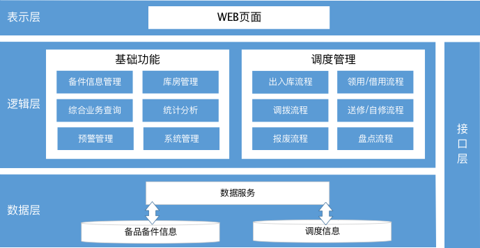 1.備品備件業(yè)務(wù)資料管理:庫(kù)房資料管理、備品備件實(shí)體業(yè)務(wù)信息管理、規(guī)格型號(hào)維護(hù)、序列號(hào)維護(hù)等